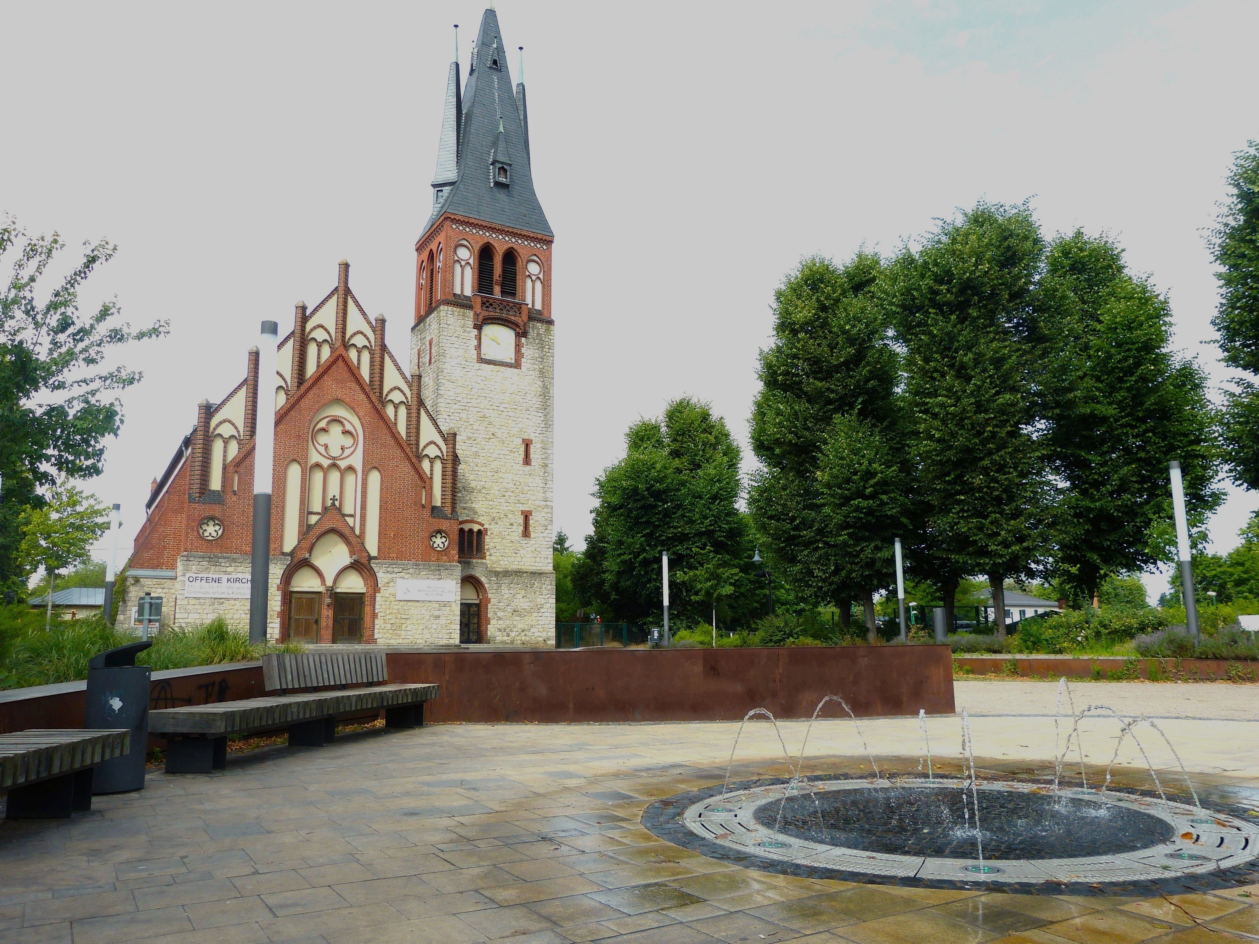Unser erfolgreicher Wettbewerbsbeitrag zur Gestaltung des Kirchvorplatzes in Erkner wurde im Jahr 2020 umgesetzt. Eine multikodierte Gestaltung öffnet den Platz als Begegnungsort für alle. Hier kann der wöchentliche Markt ebenso stattfinden wie Gottesdienste, öffentliche Veranstaltungen oder einfach ein Aufenthalt, um am städtischen Leben teilzuhaben. Die von uns eigens entwickelten geschwungenen Cortenstahlelemente verleihen dem Platz Dynamik durch ihre variierenden Breiten und Höhen. Eine kleine Brunnenanlage mit Fontänen in verschiedenen Höhen und Farben, umgeben von Sitzbänken, bildet einen besonderen Anziehungspunkt. Die seitlichen Ränder des Platzes sind mit hochwertiger Begrünung aus Stauden, Sträuchern und Bäumen versehen. Regenwasser wird vor Ort über die Oberfläche und in Unterflurrigolen versickert. Wir freuen uns über die kontinuierliche Nutzung des Platzes, die für die hohe Akzeptanz bei den Bewohner:innen spricht.